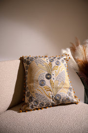 The Gulzar e Mehr cushion cover paired up with the ottoman is pure elegance! The floral-inspired design adds a touch of sophistication, while the rich colors brighten up my space. The cushion cover is soft and well-made, and the ottoman is sturdy yet stylish. A perfect duo for comfort and charm!